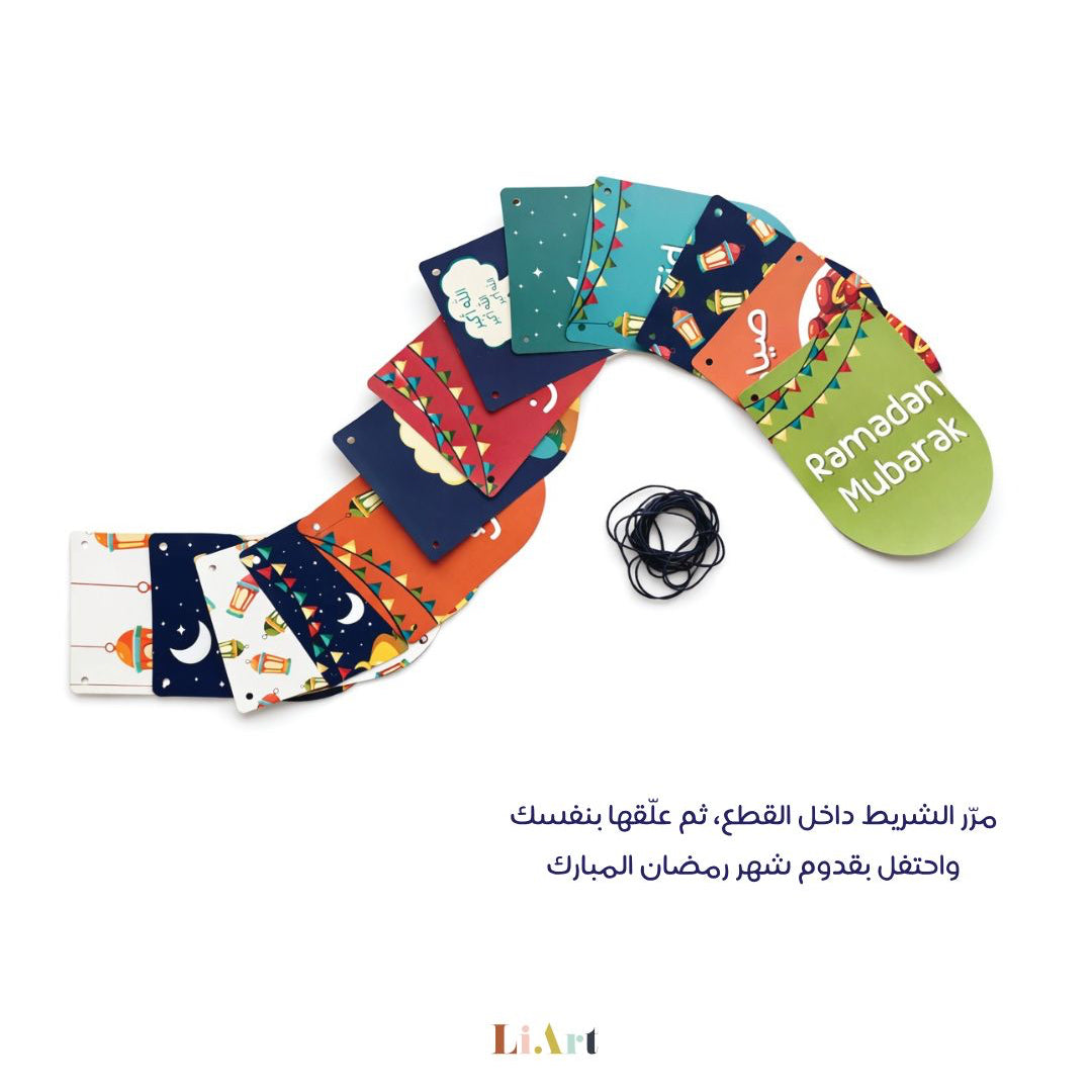 زيّنوا منازلكم مع هذه الزينة الجميلة وسهلة التركيب. كل ما عليكم هو تمرير الشريط داخل القطع وتعليقها لتضفي أجواء رمضانية دافئة ومبهجة على المنزل. مناسبة لغرف الأطفال، زوايا العائلة، أو كهدية مميزة.
