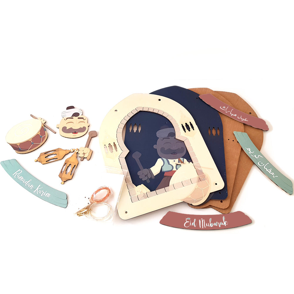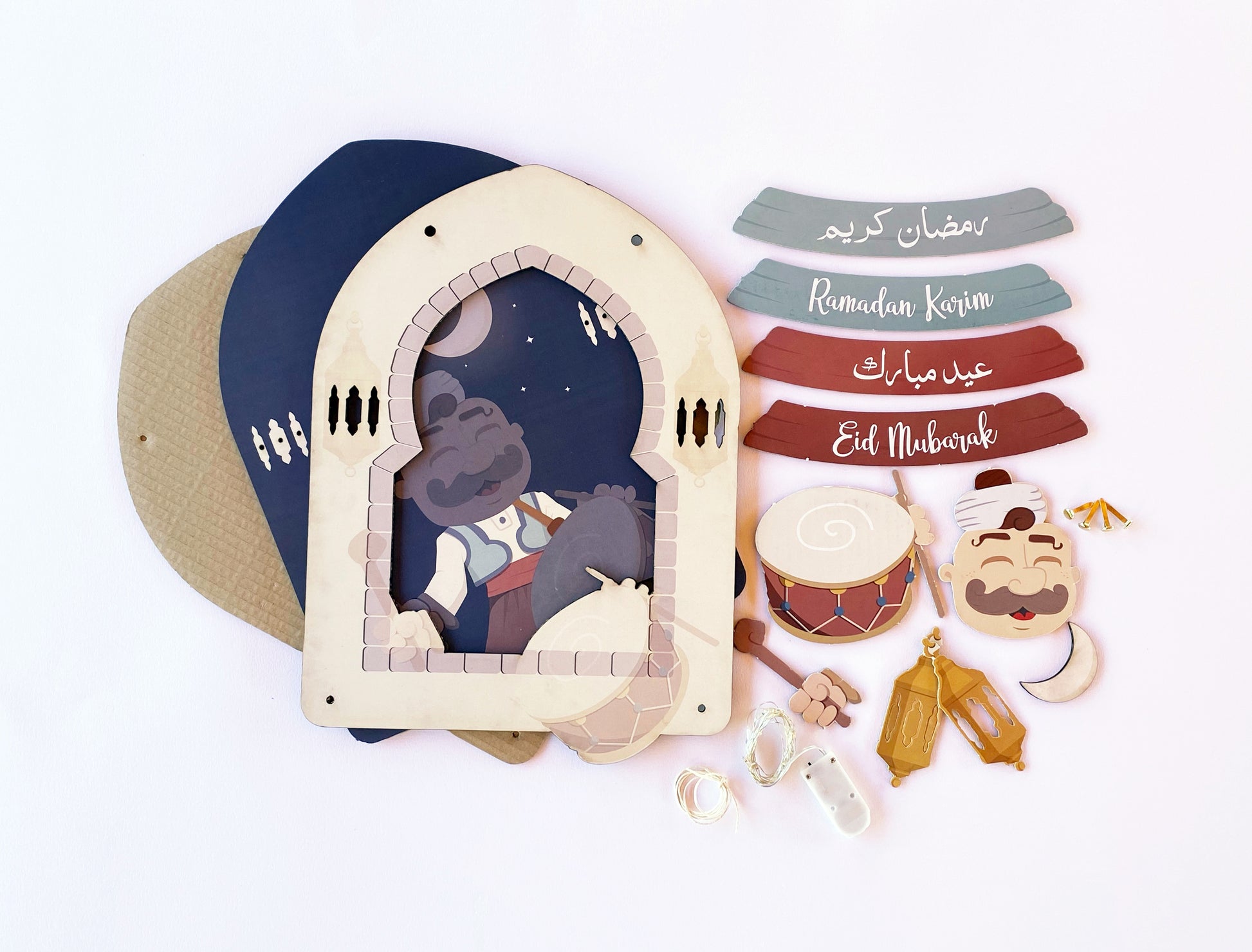 أهلا بشهر رمضان، ستقوم انت واطفالك بتركيب وتلصيق هذه القطعة، لتحصل على زينة مضيئة لباب المنزل. استمتع ....